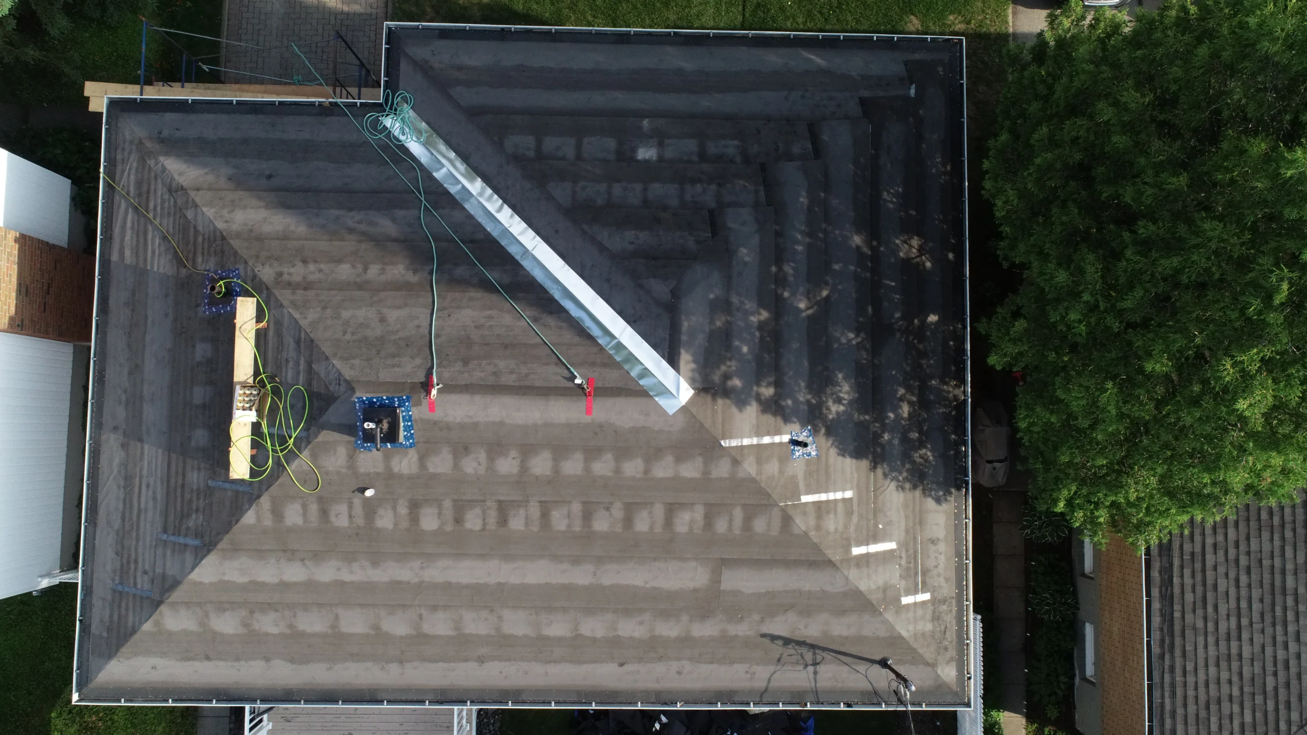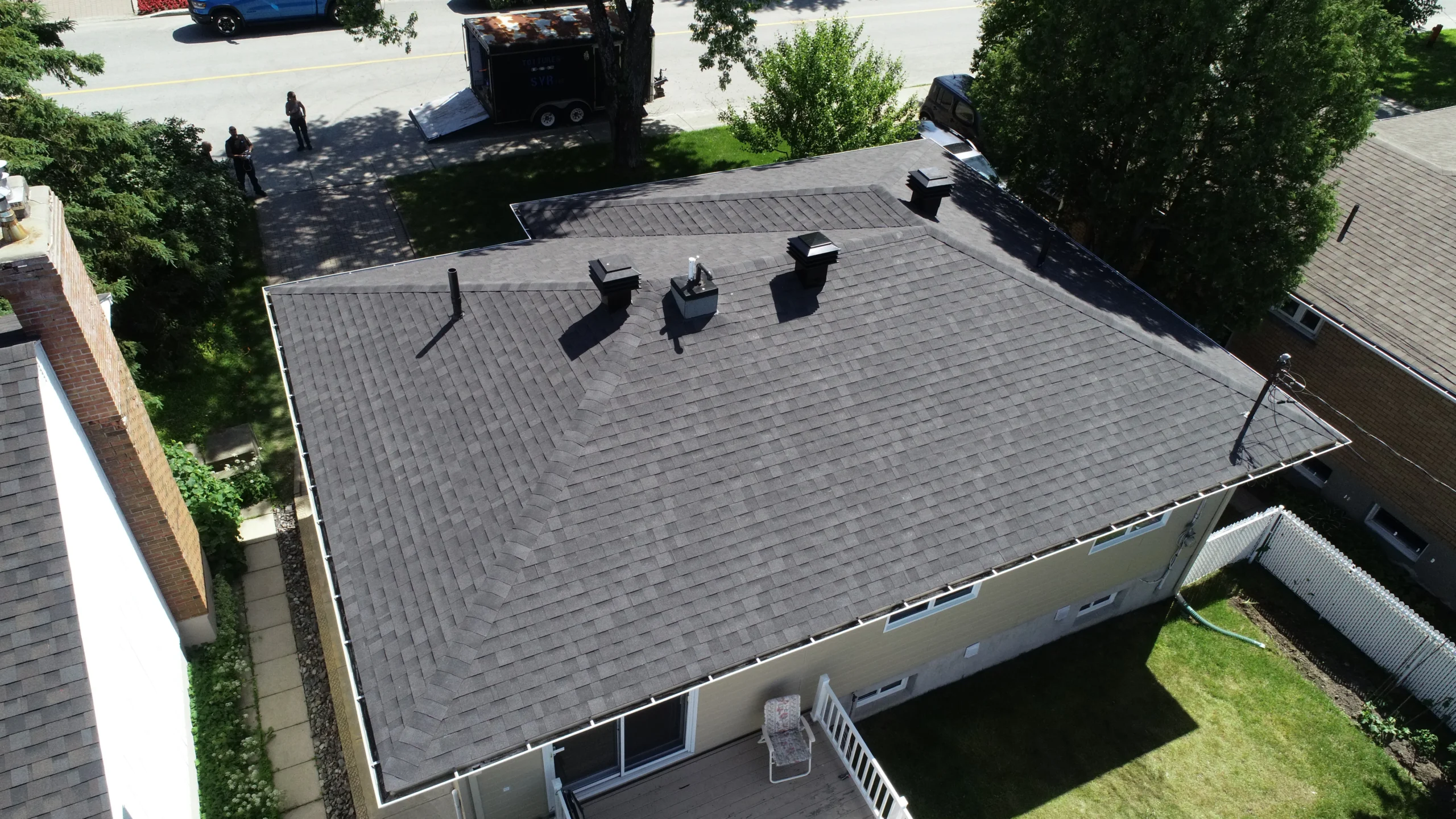 Possibilité de services de photographie par drone pour une inspection précise de votre toit et pour capturer des images de haute qualité de l’évolution de vos projets. Nos drones équipés de caméras avancées permettent d’obtenir une vue détaillée et globale de votre toiture, facilitant les inspections et les présentations visuelles.